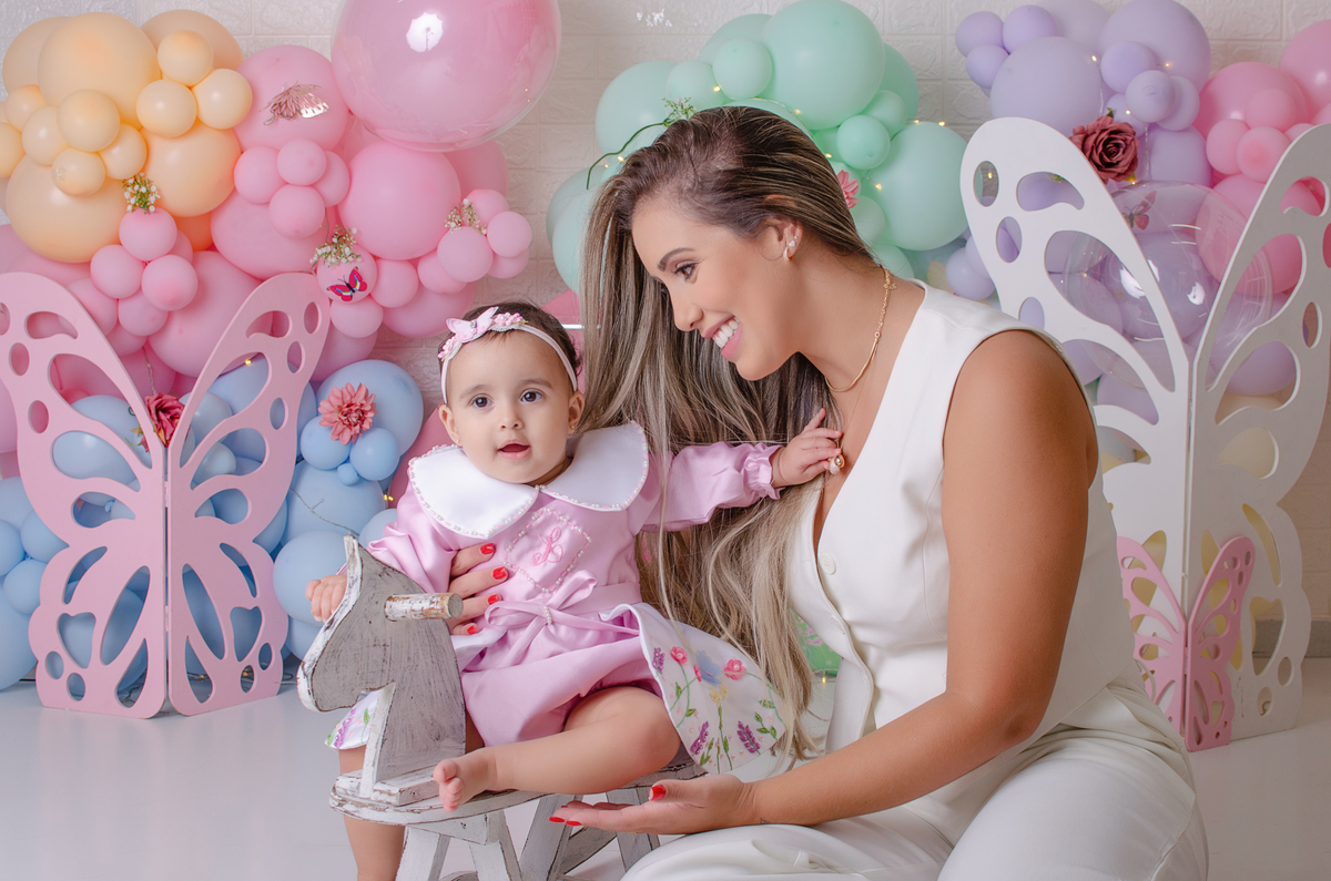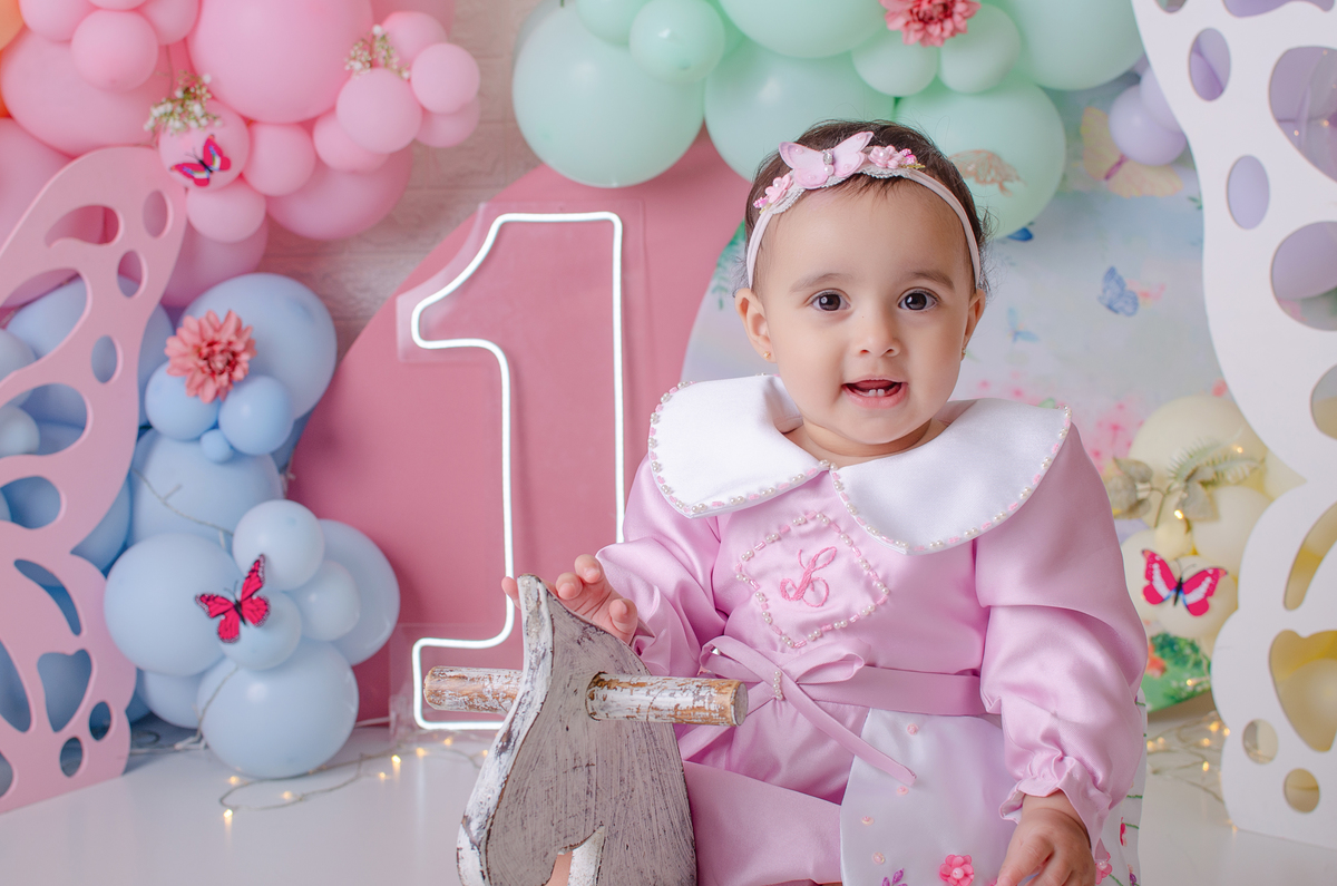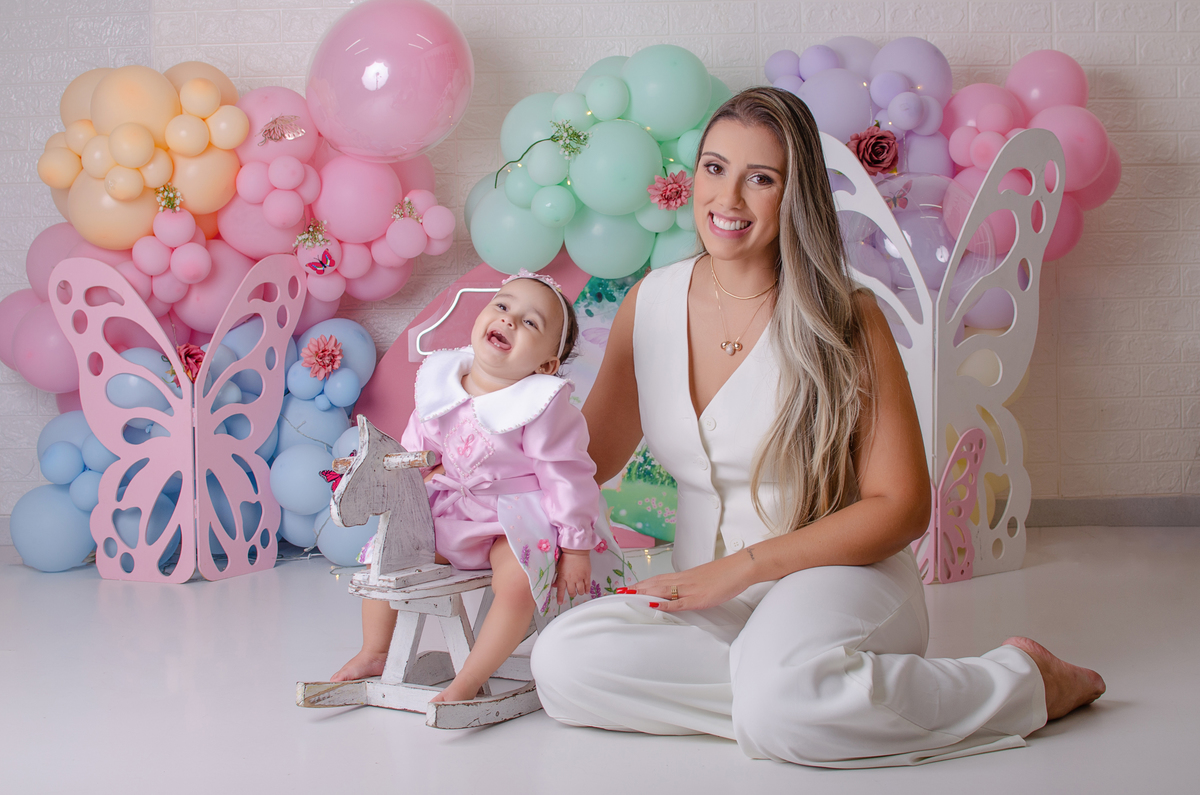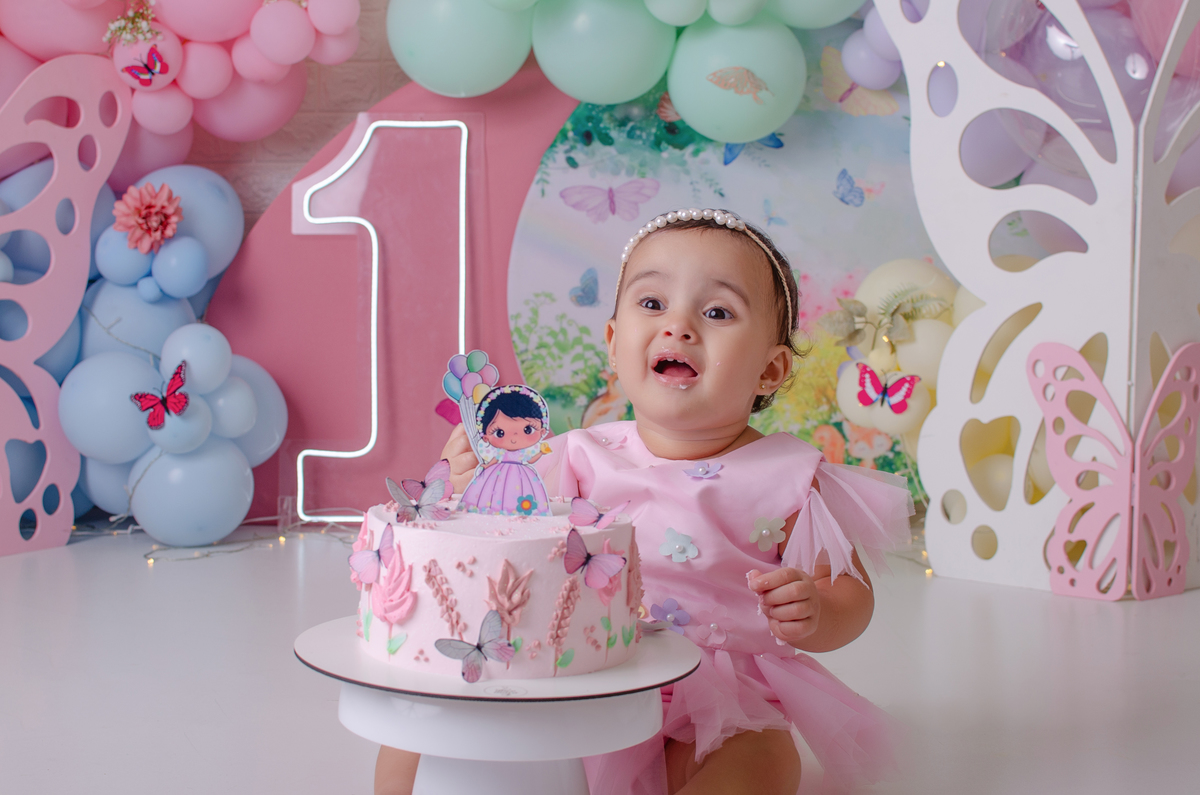 Cada detalhe pensado com carinho: cenário, bolo e muita diversão para marcar o primeiro aninho com doçura.
